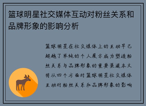 篮球明星社交媒体互动对粉丝关系和品牌形象的影响分析